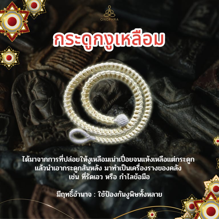 มีฤทธิ์อำนาจ : ใช้ป้องกันงูพิษทั้งหลาย