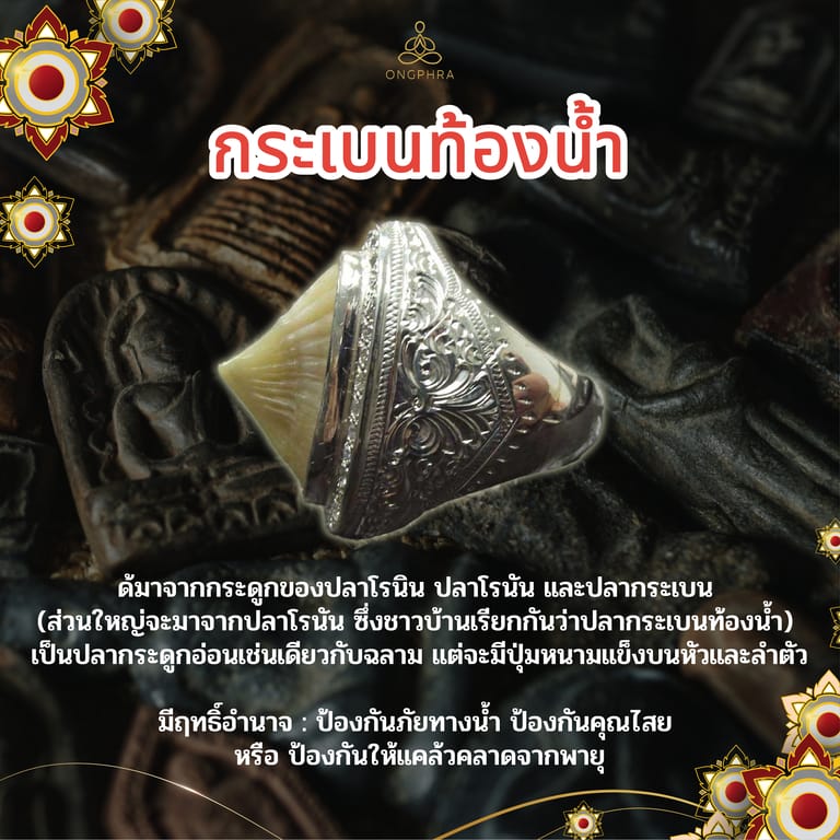 มีฤทธิ์อำนาจ : ป้องกันภัยทางน้ำ ป้องกันคุณไสย หรือ ป้องกันให้แคล้วคลาดจากพายุ